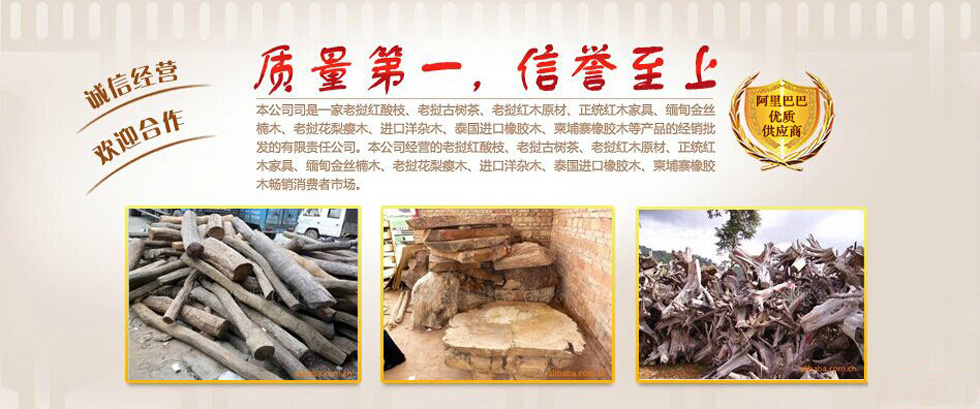 | 景洪市嘎灑禾森木制品廠位于西雙版納機場老路(紅木街)/深圳市浩坤貿(mào)易有限公司位于中國東莞市大嶺山木材市場,本公司是一家老撾紅酸枝、老撾古樹茶、老撾紅木原材、正統(tǒng)紅木家具、緬甸金絲楠木、老撾花梨癭木、進(jìn)口洋雜木、泰國進(jìn)口橡膠木、柬埔寨橡膠木等產(chǎn)品的經(jīng)銷批發(fā)的有限責(zé)任公司。本公司經(jīng)營的老撾紅酸枝、老撾古樹茶、老撾紅木原材、正統(tǒng)紅木家具、緬甸金絲楠木、老撾花梨癭木、進(jìn)口洋雜木、泰國進(jìn)口橡膠木、柬埔寨橡膠木暢銷消費者市場。本公司的產(chǎn)品在消費者當(dāng)中享有較高的地位,公司與多家零售商和代理商建立了長期穩(wěn)定的合作關(guān)系。本公司經(jīng)銷的老撾紅酸枝、老撾古樹茶、老撾紅木原材、緬甸金絲楠木、老撾花梨癭木、進(jìn)口洋雜木、泰國進(jìn)口橡膠木、柬埔寨橡膠木品種齊全、價格合理。本公司實力雄厚,重信用、守合同、保證產(chǎn)品質(zhì)量,以多品種經(jīng)營特色和薄利多銷的原則,贏得了廣大客戶的信任。 |