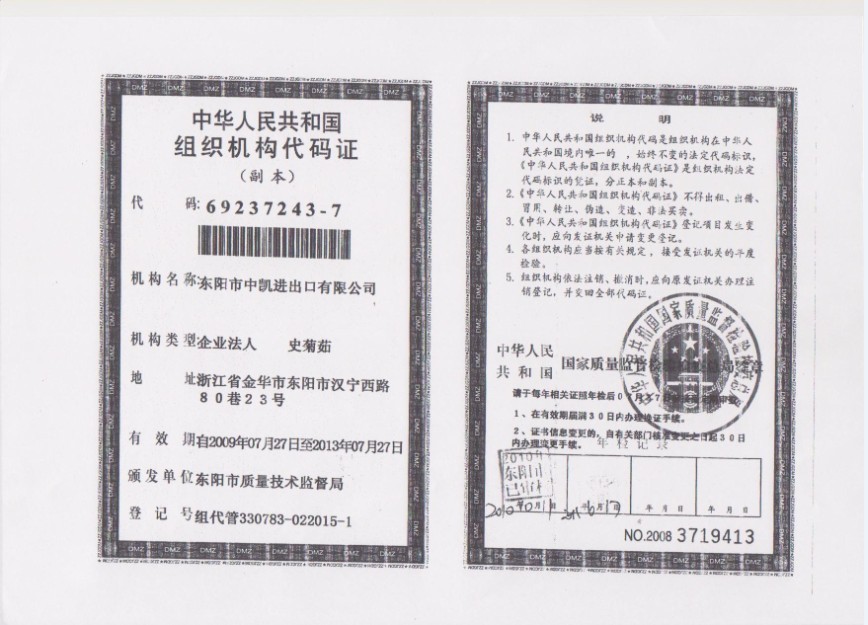 發(fā)布日期:2012-2-23 來源:東陽(yáng)市中凱進(jìn)出口有限公司