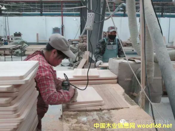 一塊不起眼的椴木菜板,從拼接到成品,一共要經過十七八道工序。各類規格的菜板上,印有精美的“百年口岸”商標和“國林木業城制”等字樣,格外醒目。